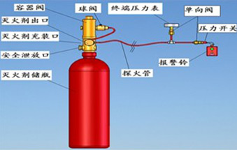 火探管自動(dòng)滅火裝置,即火探管非電自啟動(dòng)滅火裝置,是近幾年國(guó)內(nèi)外剛發(fā)展起來的一類滅火裝置,是一套簡(jiǎn)單、低成本且高度可靠的獨(dú)立自動(dòng)火探/滅火系統(tǒng)。該類滅火裝置采用柔性可彎曲的火探管作為火災(zāi)的探測(cè)報(bào)警部件,同時(shí)這種火探管還可以兼作滅火劑的輸送及噴放管道。柔性的火探管可以很方便地布置到每一個(gè)潛在的著火源的最近處,一旦發(fā)生火災(zāi),火探管受熱破裂,立即釋放滅火劑(七氟丙烷)滅火。